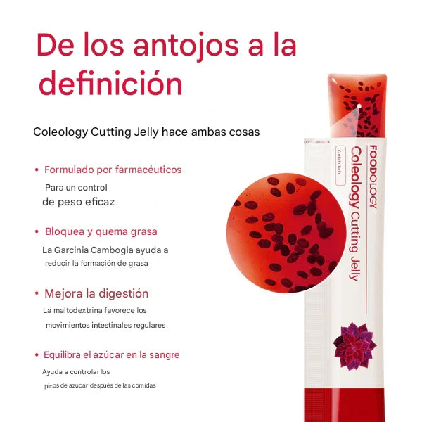 Gracias a su extracto de Garcinia Cambogia, esta gelatina bloquea la conversión de carbohidratos en grasa, reduciendo el almacenamiento de lípidos y ayudándote a lograr un cuerpo más ligero y estilizado.